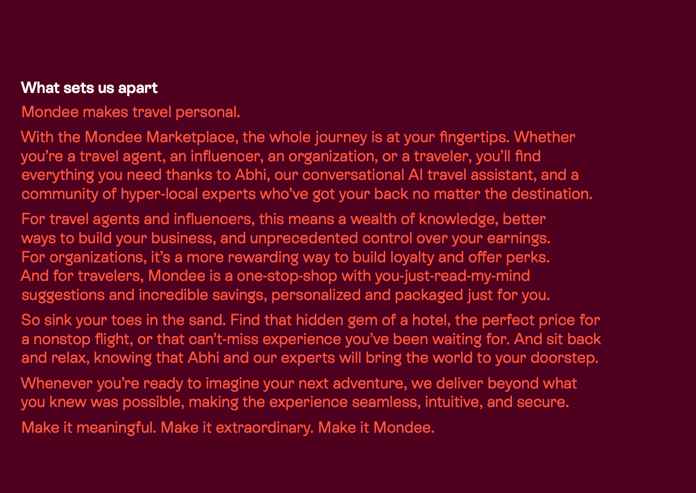 Mondee is an airline consolidater that has acquired more than 25 companies over the last several years. They were struggling to unify all the acquisitions under one brand and move the company into a new space by launching several groundbreaking products.